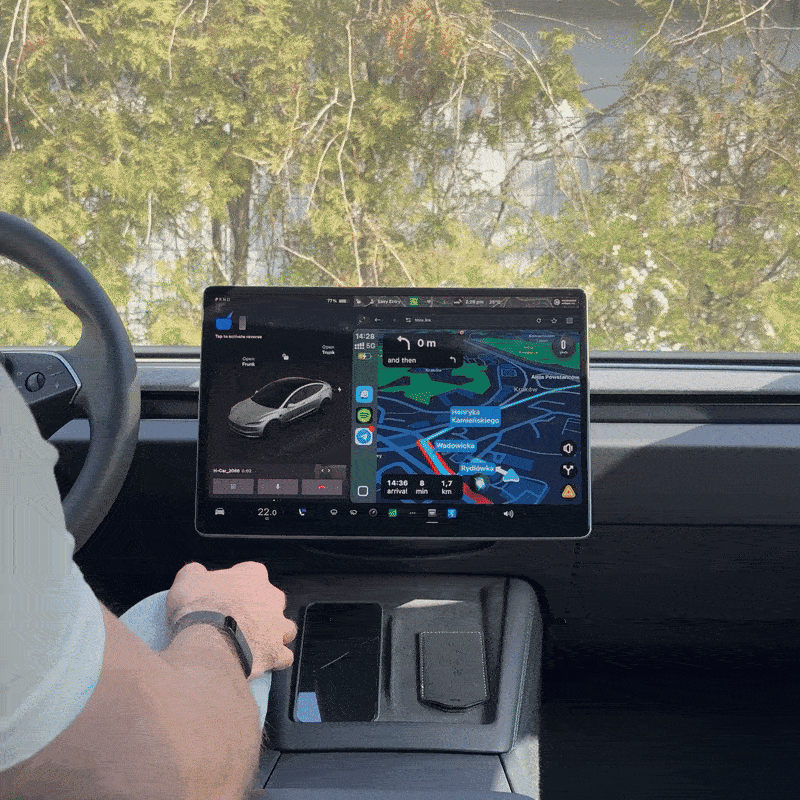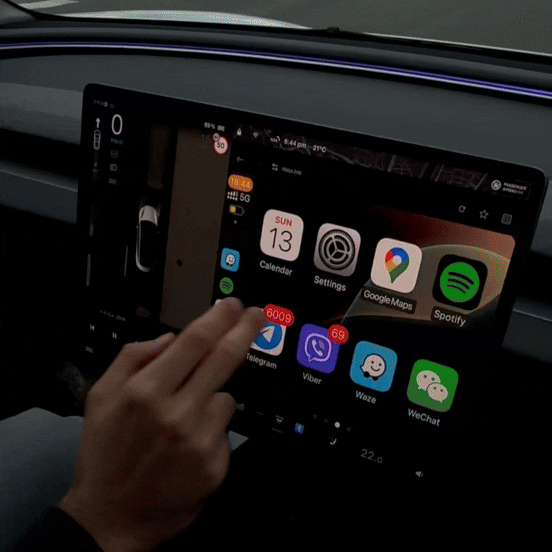 The TesaroX™ CarHub is a plug-and-play upgrade that brings Apple CarPlay and Android Auto to your Tesla. It integrates seamlessly with your car’s screen, giving you instant access to navigation, music, calls, messages, and more — just like in the latest vehicles.